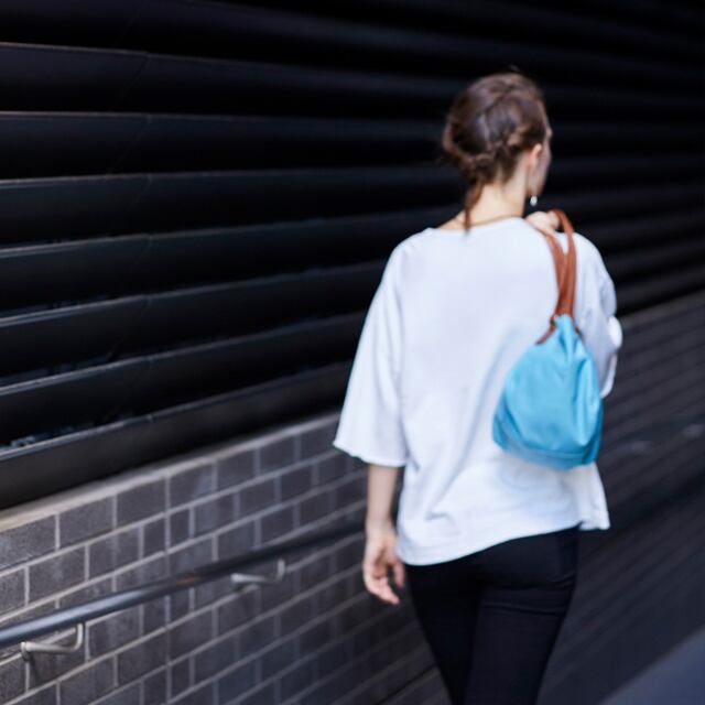 付属のストラップで持ち手を束ねることで、開口部が閉じ巾着型に形を変えます。