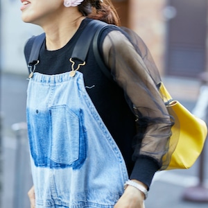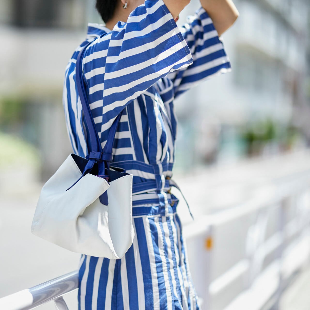 付属のストラップで持ち手を束ねることで、開口部が閉じ巾着型に形を変えます。