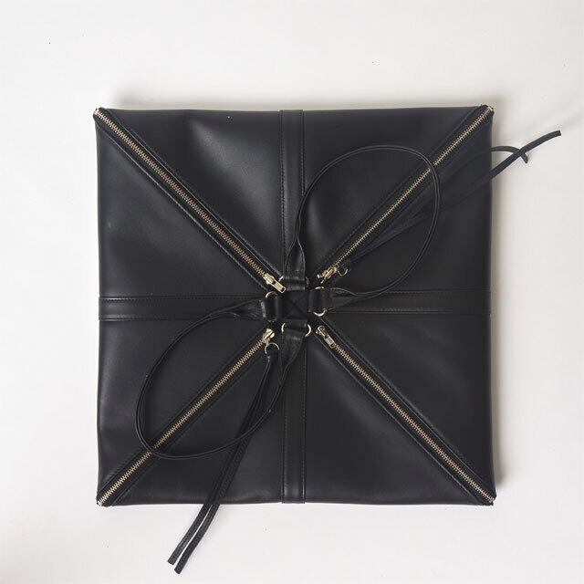 4つの四角形を組み合わせてできており、ファスナーをすべて開くと一枚の四角形になります。
